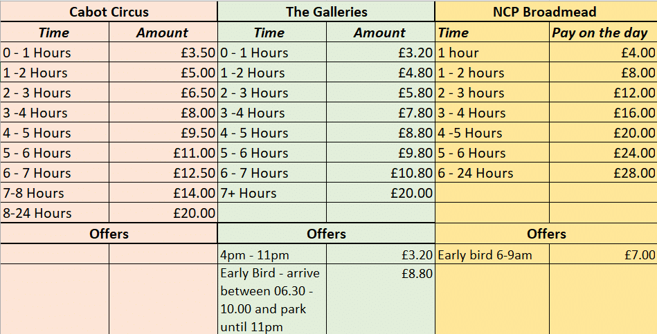 The Galleries is proud to offer the cheapest shopper car park in Bristol Shopping Quarter (based on ‘Pay on the Day’ tariffs). You can compare tariffs for the three main shopper car parks in Bristol Shopping Quarter here.